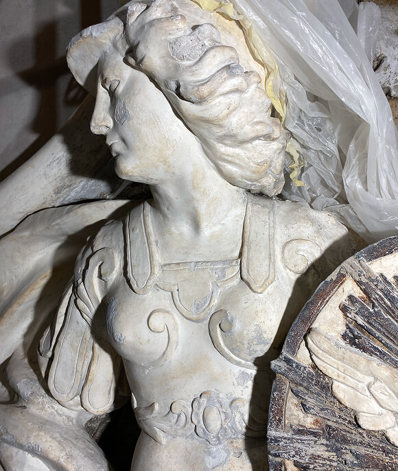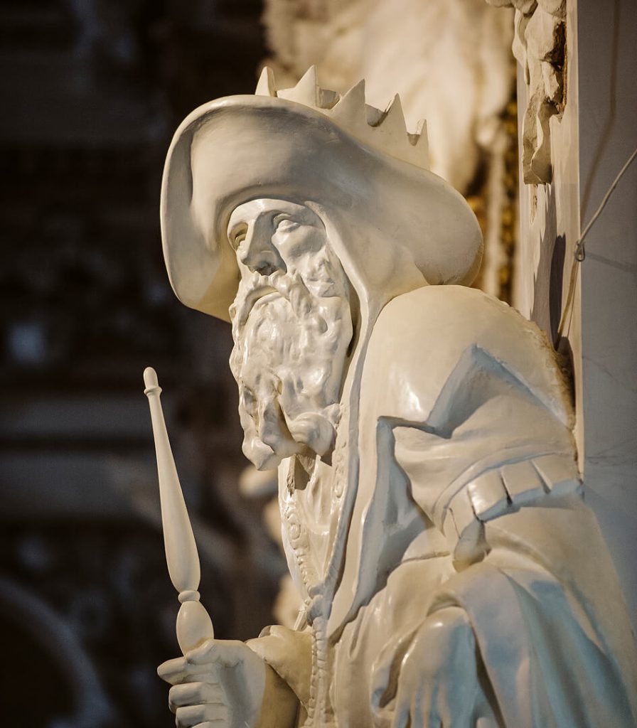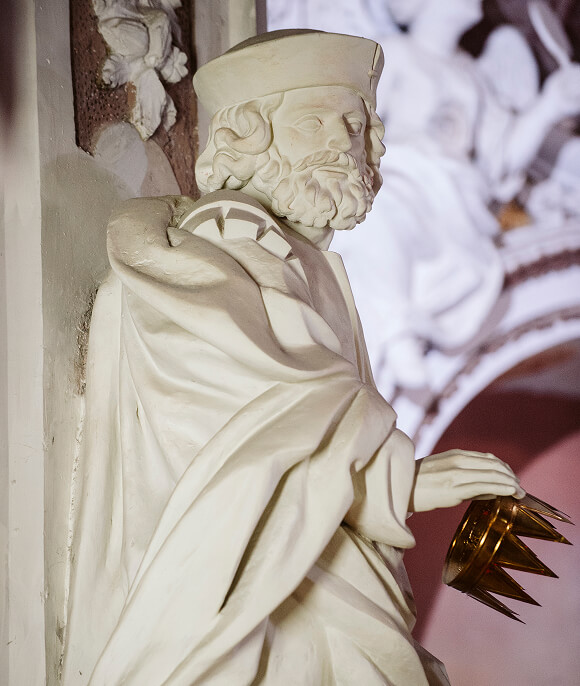 El conjunto culminaba en el ábside, hoy desaparecido, donde se representaban el Espíritu Santo, el Cordero Místico y los dos patronos del templo, completando el mensaje de la Trinidad y la Redención.